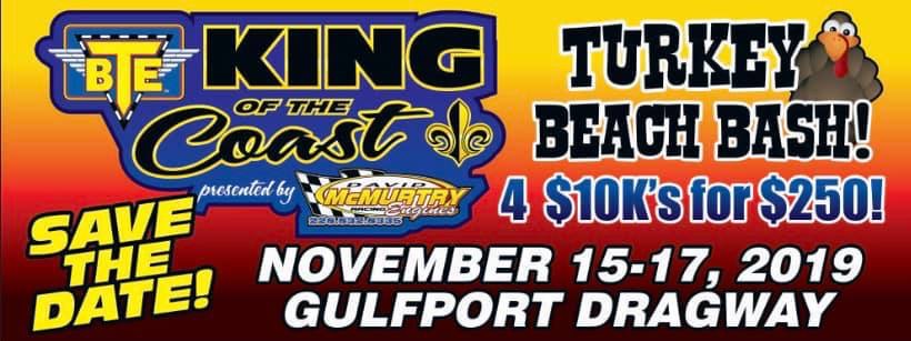Gulfport Dragway in Gulfport, MS is located on the MS Coastline that offers plenty of perks to the racers. Amazing local restaurants, numerous shopping attractions and Casinos minutes away from track truly makes BTE KOC Series Presented by David McMurtry Racing Engines a destination event for the racers.