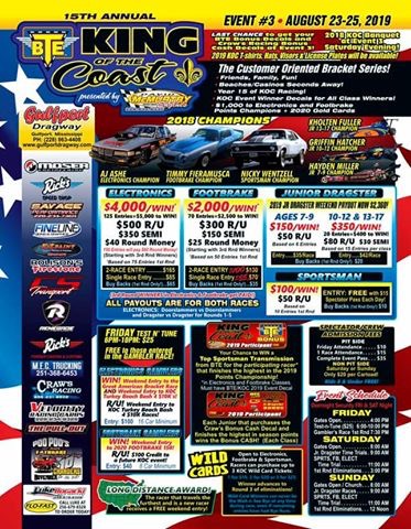 BTE King of the Coast Series Presented by David McMurtry Racing Engines to Host Events 5 THIS WEEKEND at Gulfport Dragway