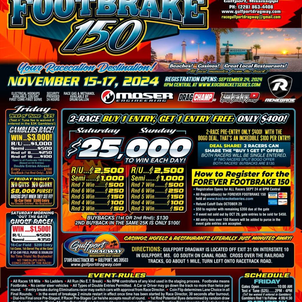 Inaugural Forever Footbrake 150 Nov. 15-17 Flyer Drop!!!! Registration Opens Sept. 24.