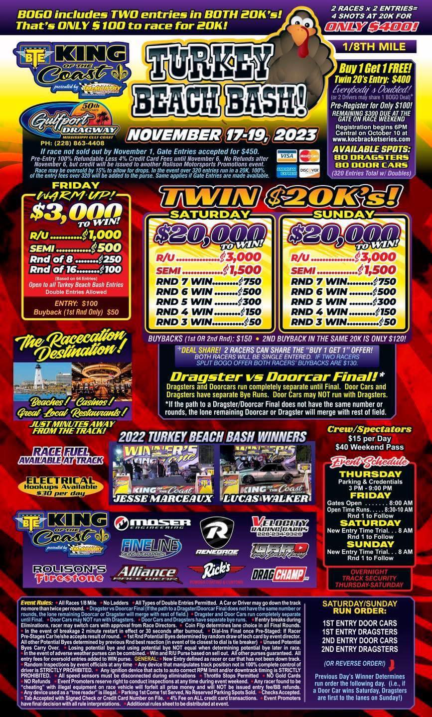 5th Annual BTE KOC Series Presented by David McMurtry Racing Engines Turkey Beach Bash Returns Nov. 17-19