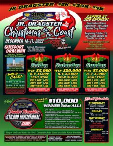 The King of the Coast Jr Dragster Christmas on the Coast 5K/20K/5K and Jr Dragster $10,000.00 Invitational.